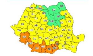 În județele Maramureș, Bistrița-Năsăud, Mureș, Harghita, Suceava, Neamț, Bacău, Botoșani, Iași și Vaslui vor fi perioade cu instabilitate atmosferică deosebit de accentuată. Vor fi vijelii puternice, intensificări ale vântului cu rafale de peste 70…80 km/h, frecvente descărcări electrice și grindină. Pe alocuri aversele vor fi torențiale, iar cantitățile de apă vor depăși izolat 25…30 l/mp.
