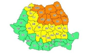 COD PORTOCALIU de vijelii puternice, grindină în intervalul de valabilitate 28 iulie, ora 13:00 – 28 iulie, ora 23:00 în județele Maramureș, Bistrița-Năsăud, Mureș, Harghita, Suceava, Neamț, Bacău, Botoșani, Iași și Vaslui.