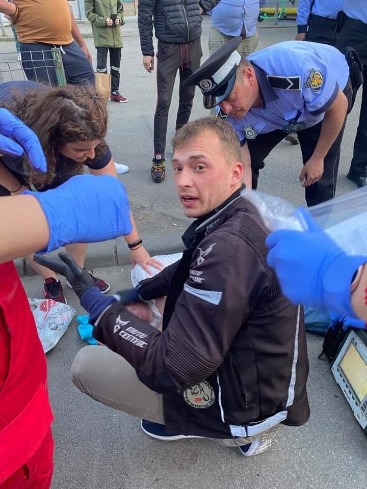 Acesta a suferit un traumatism cranian și sângera abundent, pierzându-și imediat conștiența. Pompierul și-a dat seama că victima e în pericol și s-a grăbit să-i dea primul ajutor. I-a îndemnat pe trecători să sune la 112, în timp ce-l aducea în poziția de siguranță. Un șofer i-a adus o trusă medicală din mașină, iar personalul de la o shaormerie din apropiere i-a dat o pereche de mănuși din latex.