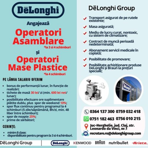 DE’LONGHI se dezvoltă în permanență și caută colegi noi.… Citeste articol »